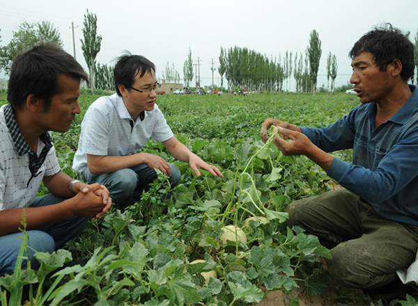 宁波市农科院高级农艺师丁伟红向库车县瓜农传授“甬甜5号”种植技术