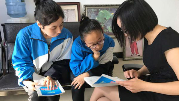 李霞老师作为去年到库车二中援疆的教师领队,担任该校副校长,从事政治教学工作。图为李霞老师在课后帮学生辅导作业。