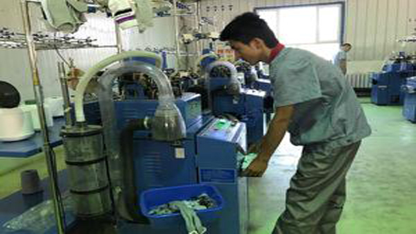 这里是比西巴格乡一家工厂的袜子生产车间,这里有30台机子,所有的袜子生产都是自动化。阿布力孜·合力力今年8月份开始在这里工作,他向记者演示了一遍制作袜子的全部流程,从一块布料放进机器里,设置好工作程序,5分钟后一只袜子便摆在了记者眼前。