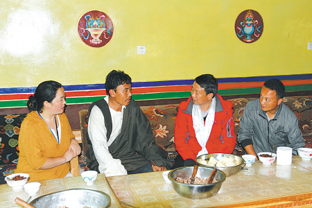 藏民在新居里迎接宁波的客人 【足迹坐标】比如县达塘乡宁波新村 【走访故事】 窗外,6000多米高的雪山,就像电影画面般一帧一帧地闪过。 青藏高原之上,疾驰的吉普车,不知越过了多少个山头,终于来到我们此行的目的地———比如县最大的乡镇,达塘乡。 一下车,迎接我们的是一场突如其来的大雨。眼前一排排灰砖红瓦的房子,被笼罩在一片迷蒙之中。 33岁的扎西拉塔,热情地将我们迎进屋内,端出热腾腾的酥油茶和盛满了人参果的酸奶,还有冒着热气的牦牛肉———据说,这是给远方客人最好的礼遇。 2011年,分家后的扎西拉塔,离开原先9个人挤在一起的土房子,住进了宁波新村现在这个100多平方米的房子里。这里的每套房子,有功能划分,包括客厅、卧室和佛殿,还有农牧民生活必备的储备房、燃料房和院子。 “可以说,这里完全改变了我们的居住条件,一家人生活上的需求基本满足了。”5分钟,孩子就能走到学校上课,步行六七分钟可以到附近卫生院看病,扎西拉塔喜滋滋地说。 “以前,这里不是这样,外头下大雨,里头下小雨。一到冬天就停电,家里头只能烧牛粪取暖,味道很重。”曲珍是达塘乡的副乡长,也是宁波新村落成的见证者。 2008年,在宁波援藏干部的张罗下,达塘乡宁波新村正式开工建设,2009年竣工并入住。这个新村按照功能规划,占地总面积19980平方米,共有50套房,主要分配对象是达塘乡的贫困户。 这样一来,改变了当地农牧民的生活方式。原先四处分散放牧的藏民集中住上了功能齐全的房子,出行生活更加方便,空闲时,妇女们喜欢一起逛街,小孩们则聚在一起,串门、玩耍。今年,小区里的围墙、道路、排水等设施进行了整修改造,藏民的居住条件有了很大的改善。 “农牧民大多不会说汉语,他们说得最多的是‘扎西德勒’‘扎西德勒’,真心感谢援藏干部们的关爱和帮助。”曲珍说。 这仅仅是一个开始。如今的比如,正在向现代化的城镇迈进,类似新农村建设的农村人居环境建设和环境综合治理工程,正在该县辖区10个乡镇70个村同步推进。 据悉,在这个起步于2014年的民生工程中,将重点实施农家书屋建设工程、综合文化体育设施建设工程、农村垃圾污水整治工程等7项工程,共计投资7322万元。 “比如县地广人稀,农牧民之前的居住生活条件不是很理想。我们也希望通过类似的工程,让广大群众充分感受到党和政府的温暖,切身体会到惠从何来,惠在何处。”第七批援藏干部、比如县委常务副书记徐真民说。 走出门,天空已经放晴。 雨后的彩虹,挂在层峦叠嶂的群山中,美丽得就像一幅画。 【记者手记】 “安得广厦千万间,大庇天下寒士俱欢颜。”杜甫的发问,在当下看来还是有现实意义。安居才能乐业,藏民住进舒适的房子,生活更有奔头了。 西藏自治区成立50周年,原先习惯了农牧作业的藏民也陆续迎来了更好的生活。但是,地广人稀,交通差,海拔高,这些都是不能回避的问题,客观上影响了当地村民生活质量的提升。 近10年来,从宁波新村配套工程建设、达塘乡小集镇示范建设、农牧区水电路桥实事工程、农牧民安居工程配套和光明工程,到乡镇小学、敬老院、幼儿园、卫生院等项目的普及,宁波数批援藏干部一步一个脚印,为比如人民勾勒出越来越清晰的安居梦想。 十年磨一剑,梦想的实现,需要时间的锤炼,也会因为光阴的酝酿,最终散发芬芳。