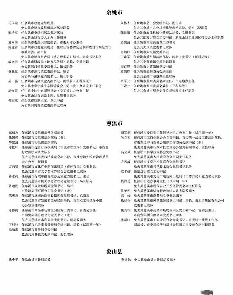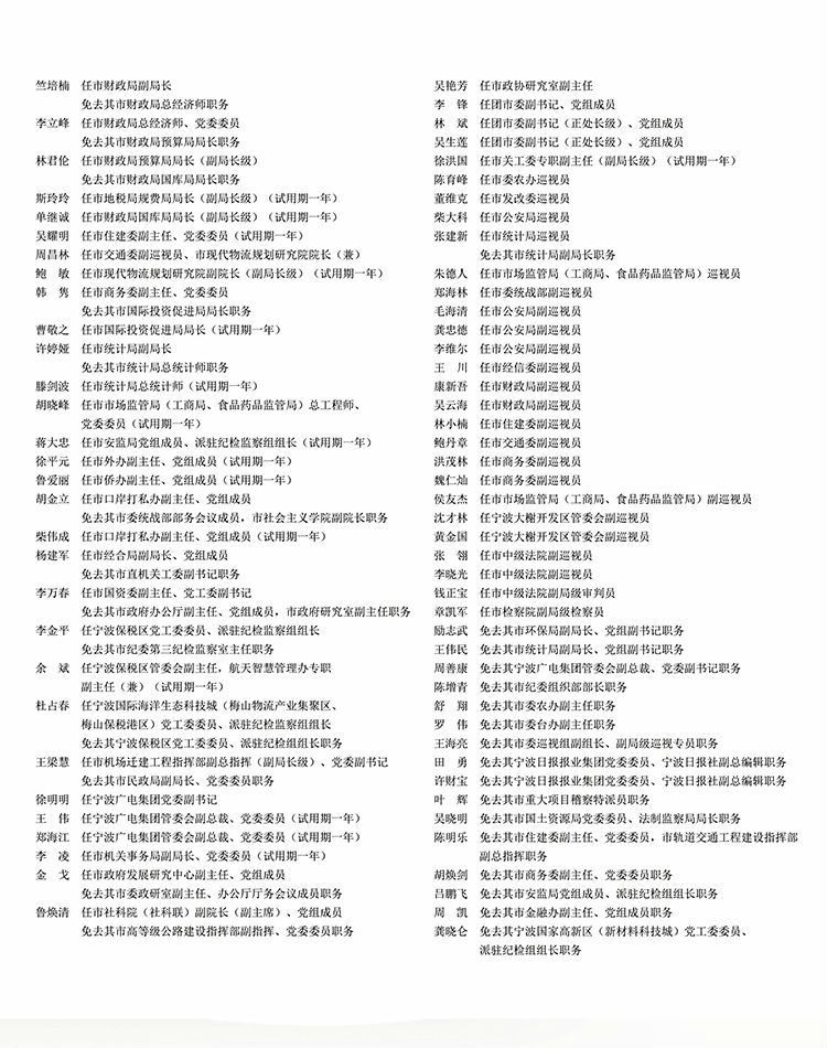 宁波市委管理干部任免信息、县(市)区委管理的正职干...